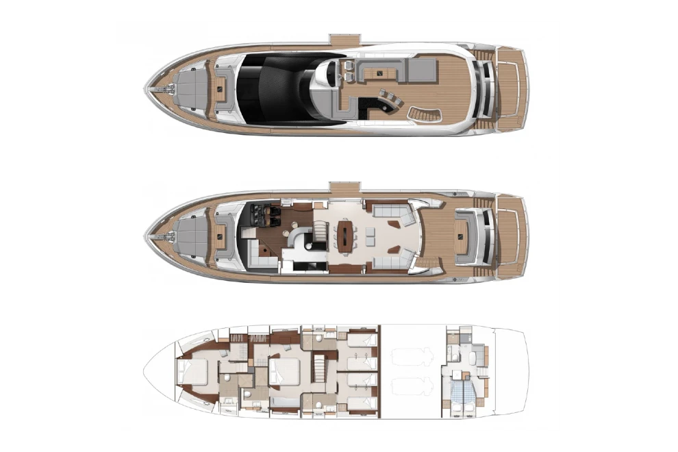 One of its standout features is the inclusion of four spacious bedrooms, providing both comfort and luxury for extended voyages. Each bedroom is meticulously designed and equipped to ensure a relaxing and restful stay for passengers.