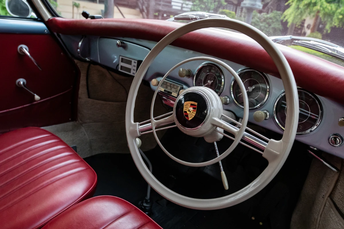 Porsche's sports car legacy began with the 356 in 1948. This Type A model from 1959, a rare right-hand drive version, is a testament to Porsche's early craftsmanship.